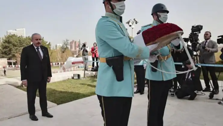Şentop, anıta çelenk koydu. Daha sonra saygı duruşunda bulunuldu ve İstiklal Marşı okundu.