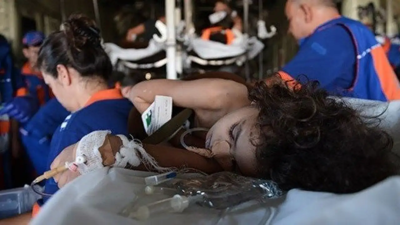 Aralıklarla havalimanına getirilen yaralıların buradaki ilk müdahaleleri Sağlık Bakanlığı Ulusal Medikal Kurtarma Ekibince (UMKE) yapıldı. Daha sonra 14'ü çocuk olmak üzere 23 yaralıyla refakatçileri, askeri uçağa alındı.