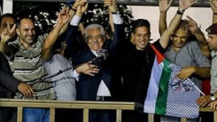 Filistin Devlet Başkanı Mahmud Abbas da İsrail'in serbest bıraktığı 11 Filistinli mahkumu Ramallah'taki Başkanlık Sarayı'nda sevinç gösterilerinin yapıldığı bir ortamda karşıladı ve kucakladı.