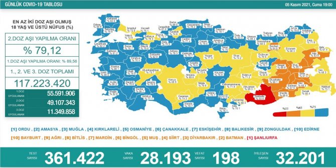 Türkiye'de son 24 saatte 361 bin 422 COVID-19 testi yapıldı, 28 bin 193 kişinin testi pozitif çıktı, 198 kişi yaşamını yitirdi. Bakan Koca, 'Gebelerin, kronik hastalığı olanların ve 60 yaş üzerindekilerin tam aşılı olmaları son derece önemlidir' dedi