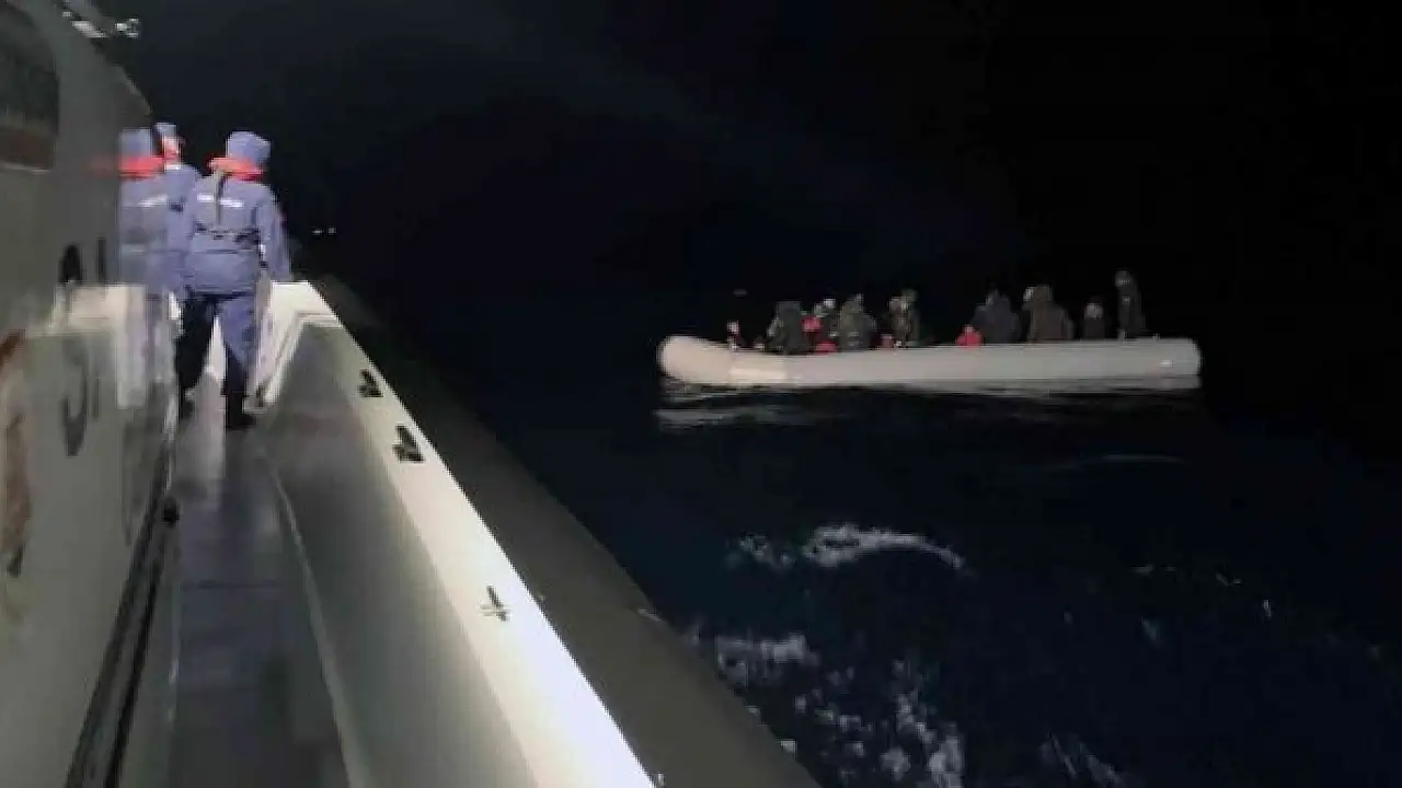 Açık denizde sürüklenen lastik bot içerisindeki 28 düzensiz göçmen Sahil Güvenlik ekileri tarafından kurtarıldı.