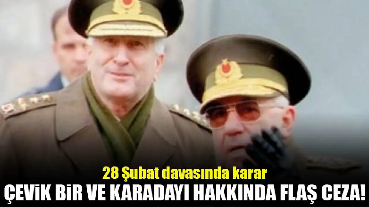 28 Şubat dönemine ilişkin 103 sanıklı davada esas hakkındaki görüşünü açıklayan savcı, dönemin Genelkurmay Başkanı emekli Orgeneral İsmail Hakkı Karadayı ile dönemin Genelkurmay 2. Başkanı emekli Orgeneral Çevik Bir'in de arasında bulunduğu 60 kişinin ağırlaştırılmış müebbet hapis cezasına çarptırılmasını istedi.