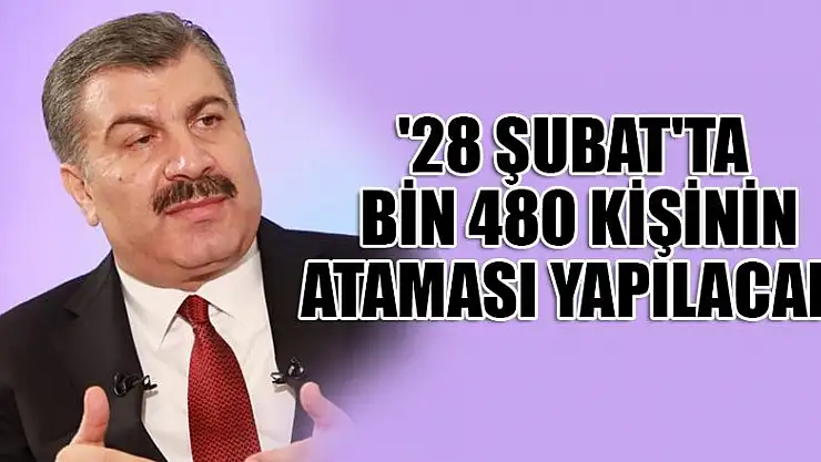 Sağlık Bakanı Koca, '25 bine yakın stratejik personelin atamasının ilk adımı olarak ilan duyurusu yapıldı. 28 Şubat'ta noter huzurunda çekilişi yapılacak. Burada toplam bin 480 kişinin ataması yapılacak.' dedi.