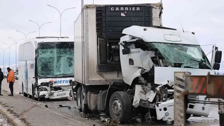 2'si çocuk 15 kişinin yaralandığı kazada, yolcu otobüsü ve tırların karıştığı zincirleme trafik kazasında enkaz kaldırma çalışmaları sürüyor.