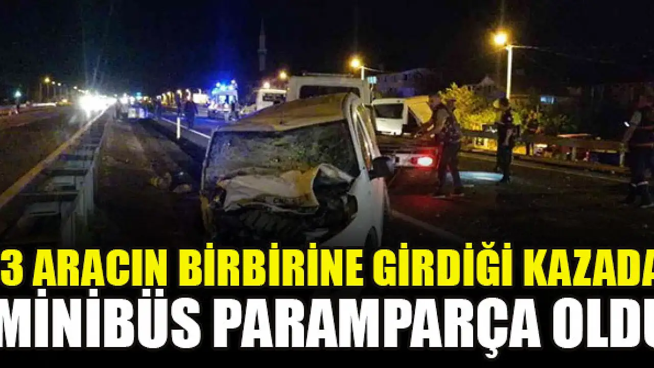 3 aracın birbirine girdiği kazada minibüs paramparça oldu