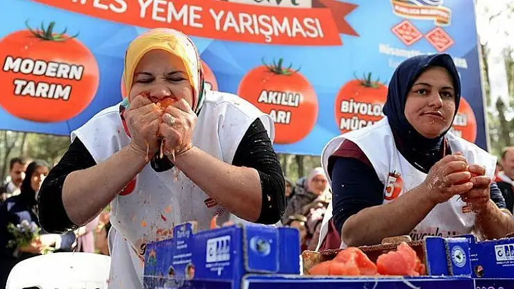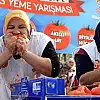 Yarışma sonunda 3 dakikada 4 kilo 930 gram domates yiyen Ela Karakaya birinci, 4 kilo 765 gram domates tüketen Meral İlci ikinci ve 3 kilo 580 gram domates yiyen Naciye Aydemir ise üçüncü oldu.