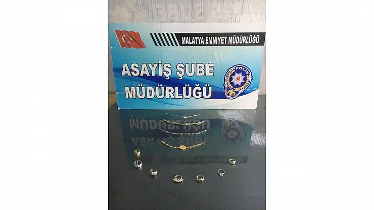 Malatya Emniyet Müdürlüğü Asayiş Şube Müdürlüğü görevlilerince ikametten hırsızlık olaylarına yönelik yapılan çalışmalarda, Malatya'nın Yeşilyurt İlçesi Bostanbaşı Mahallesinde bir ikametten 26 bin TL değerinde ziynet eşyasının çalınması olayını gerçekleştiren şüpheli E.N. isimli şahıs çalmış olduğu ziynet eşyaları ile birlikte yakalandı. Şahsın ayrıca Şanlıurfa'da ikametten 1 adet hint kolyesi, 2 adet bilezik, 2 adet yüzük, 1 adet küpe ve 20 bin TL paranın çalınması olayı firarisi, yine Şanlıurfa'da ikametten 1 adet 30 gr. altın bilezik, 1 adet 22 gram altın bileklik, 1 adet 20 gr altın zincir, 1 adet 7 gr. tuğra altın kolye, 3 çift altın küpe, 3 adet 14 ayar bileklik ve bin TL paranın çalınması olayı firarisi, ayrıca Hatay'da ikametten 200 bin TL değerinde ziynet eşyasının çalınması olayı firarisi ve Niğde'de ikametten 13 bin 400 TL paranın çalınması olayı firarisi olduğu tespit edildi.