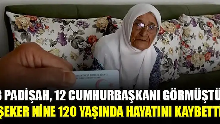 Amasya'da 3 padişah ve 12 Cumhurbaşkanı dönemine tanıklık eden Şeker Aslan, 120 yaşında hayatını kaybetti.