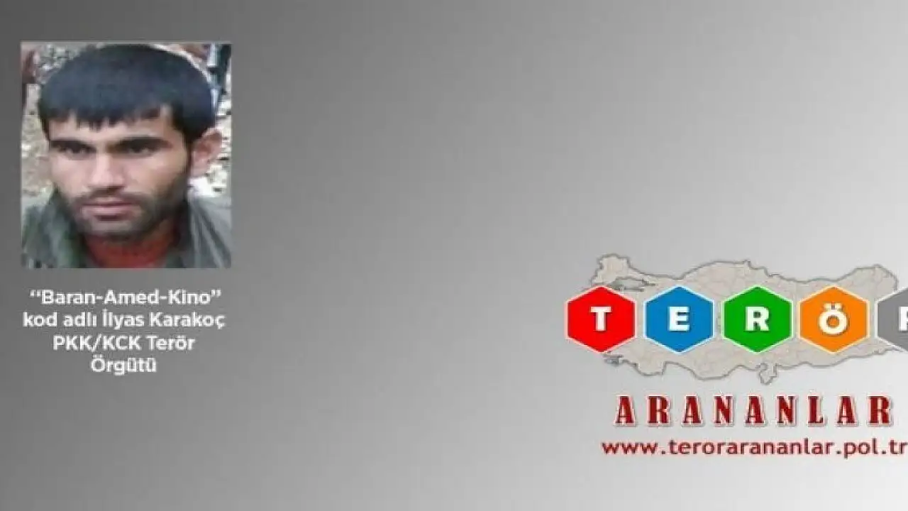 Terörden arananlar listesinde 300 bin TL ödülle 'gri' kategoride yer alan 'Baran-Amed-Kino' kod adlı İlyas Karakoç etkisiz hale getirildi.
