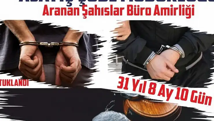 Nevşehir'de aranan şahıslara yönelik olarak yapılan çalışmalarda 31 yıl 8 ay 10 gün hapis cezası bulunan şahıs yakalanarak gözaltına alındı.