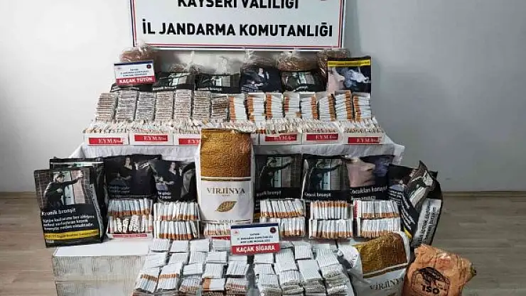 Kayseri Cumhuriyet Başsavcılığı koordinesi ile Kayseri İl Jandarma Komutanlığı ekipleri tarafından yapılan tütün ve sigara kaçakçılığı ile mücadele çalışmalarda Melikgazi ilçesinde 6 ikamette yapılan aramalar sonucunda 150 kilogram kıyılmış tütün, 33 bin 400 adet kaçak tütün dolu makaron ve bin 800 adet bandrol bulundu.
