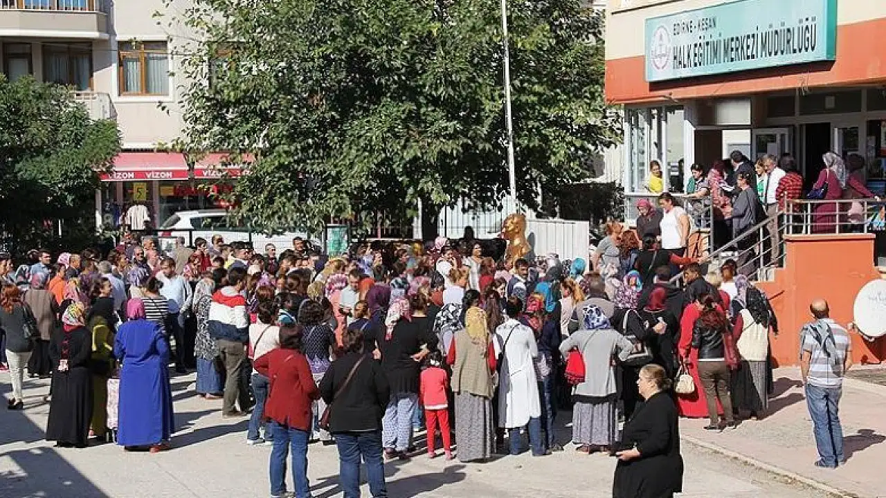 33 kişinin alınacağı işe yoğun talep olması nedeniyle Halk Eğitim Merkezinin bahçesinde yoğunluk oluştu.