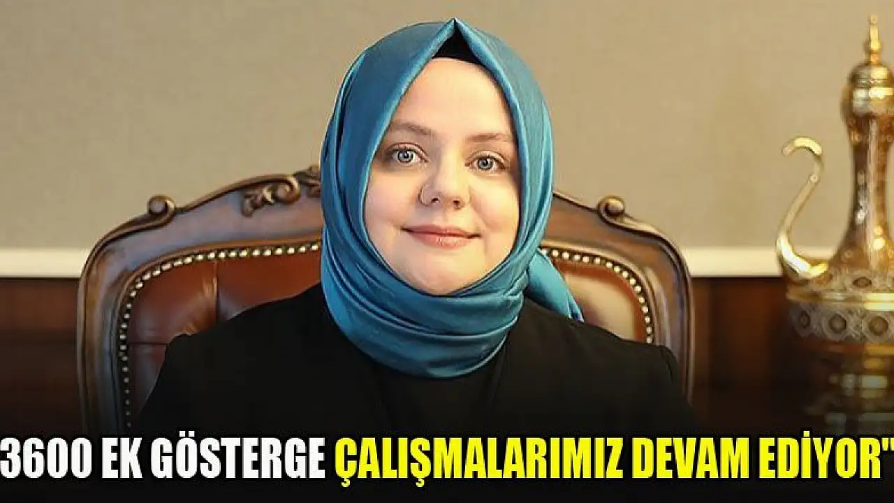 Aile, Çalışma ve Sosyal Hizmetler Bakanı Zehra Zümrüt Selçuk, '3600 ek gösterge çalışmalarımız Devlet Personel Başkanlığı ve Bakanlıklarımızla devam ediyor.' dedi.