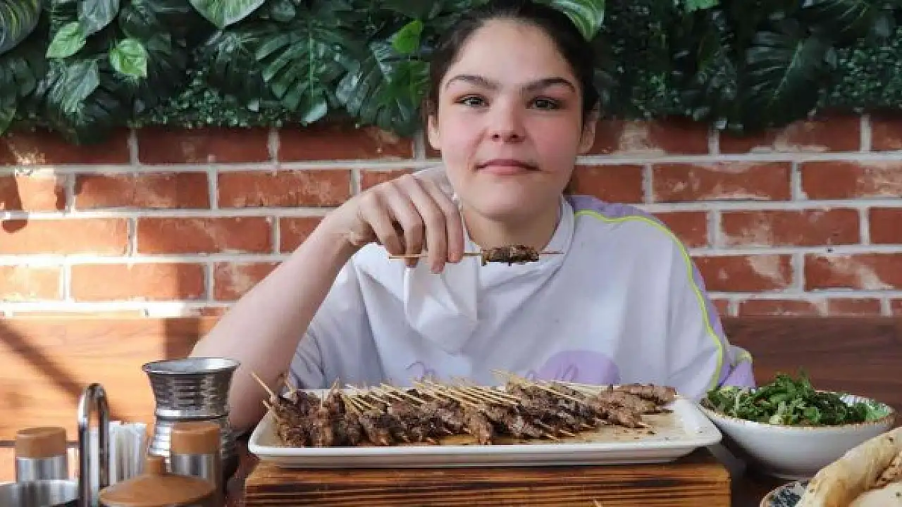 Denizli'de bir restoranın düzenlediği "en çok çöp şiş yeme" yarışmasına Kütahya'dan katılan 21 yaşındaki kadın, canlı yayında 37 dakikada 255 adet çöp şiş yiyerek hem rekor kırdı hem de 26 bin 550 TL'lik para ödülünün sahibi oldu.