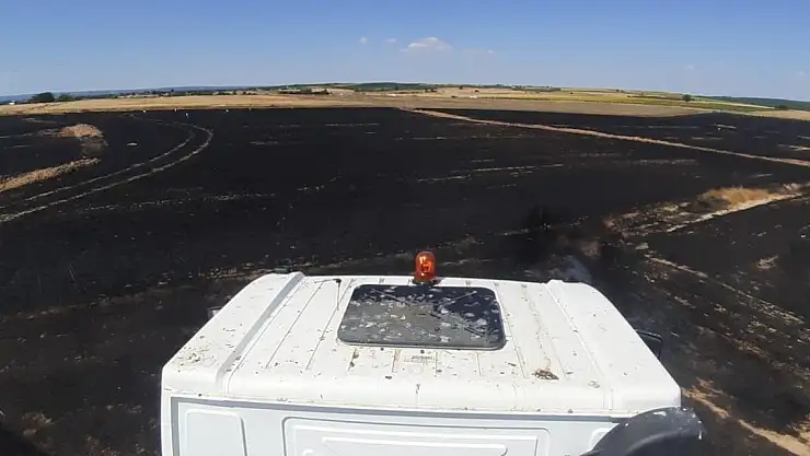 Edirne'de çıkan tarla yangınında, 20 bin dönüm alana ekili yaklaşık 38 ton buğday küle döndü.