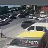 Bursa'da hızla gelen hafif ticari araç, fren yapmasına rağmen duramayınca önündeki otomobile çarptı. Savrulan otomobil de önündeki iki araca çarparken, kaza kameraya anbean yansıdı.