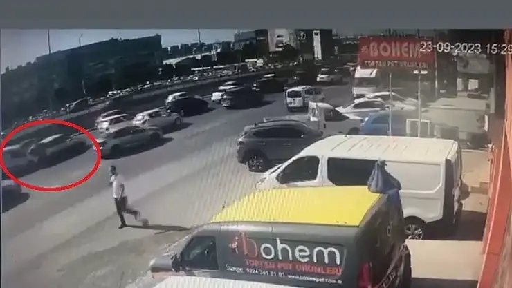 Kaza, merkez Osmangazi ilçesi Emek Zekai Gümüşdiş Mahallesi Sanayi Caddesi üzerinde meydana geldi. Hafif ticari aracın sürücüsü, cadde üzerinde hızla seyir halindeyken önünde yavaşlayan trafiği geç fark etti. Frene basan sürücü kayan aracın kontrolünü kaybedince araç, otomobile çarptı. Savrulan otomobil de önündeki 2 araca vurarak durabildi. Kaza anı güvenlik kamerasına yansırken, kazada yaralanan olmadı.