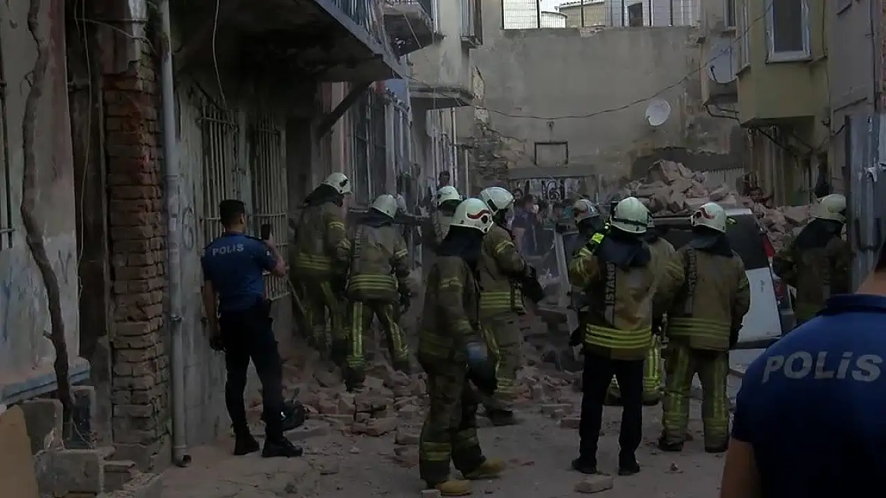 BEYOĞLU'nda 4 katlı metruk binanın duvarı çöktü. Olay yerine itfaiye, polis ve sağlık ekipleri sevk edildi.