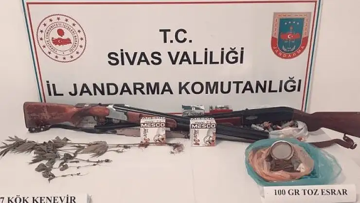 Şarkışla ilçe Merkezi ve Akçakışla köyünde toplam 5 adreste yapılan aramada, (100) gr toz esrar, (7) kök kenevir bitkisi, (3) adet ruhsatsız av tüfeği ele geçirildi. 3 şahıs hakkında uyuşturucu madde imal ve ticareti ve uyuşturucu madde kullandıkları gerekçeleri ile işlem başlatıldı.