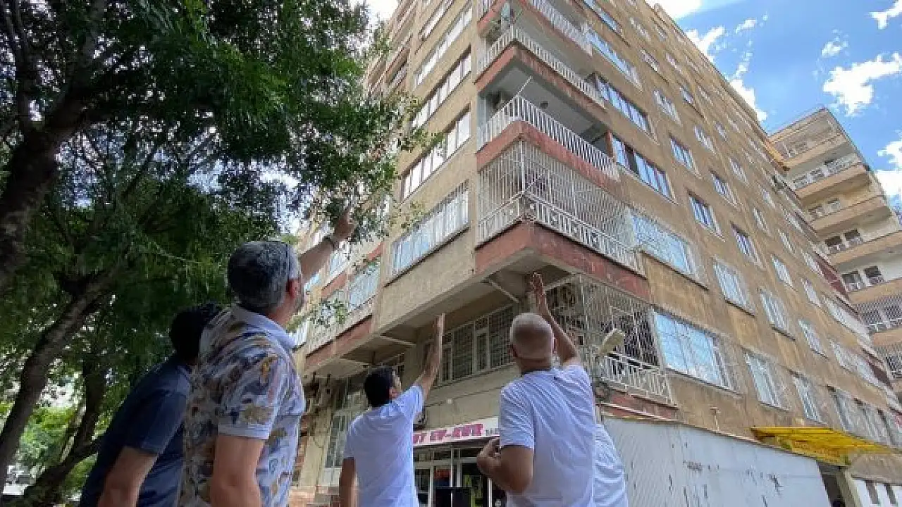 DİYARBAKIR'ın Yenişehir ilçesindeki 40 yıllık 7 katlı apartmandan düşen beton ve sıva parçaları 2 kişinin yaralanmasına neden oldu. Apartmanın altındaki esnaf Sinan Satık, düşen parçalardan birinin ayağına isabete ettiğini belirterek, "İlla birinin ölmesi mi lazım, geleceğiz diyorlar, kayıt oluşturduk diyorlar. Hayatımız risk altında. Çocuklarımıza bir lokma ekmek götüreceğiz. Gelip burada gerekeni yapsınlar. Binayı mı kapatacaklar ne yapacaklarsa yapsınlar. Bir an önce burayı düzeltsinler" dedi.