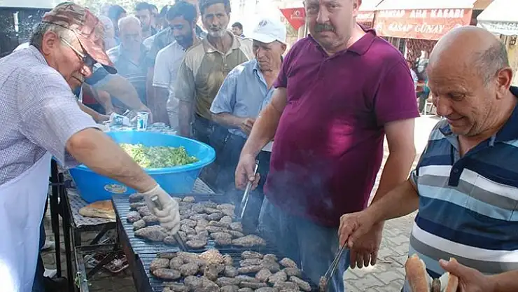 Çanakkale'nin Bayramiç ilçesinde 40 yıldır kasap dükkanı işleten bir kişi, emekliliğini kutlamak için iş yerinin önünde kurduğu tezgahta 120 kilo kıymadan hazırladığı köfteyi pişirip dağıttı.