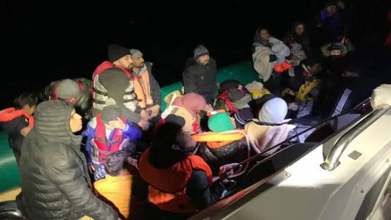 Çanakkale'nin Ayvacık ilçesinde, Türk kara sularına itilen 41 düzensiz göçmen karaya çıkarıldı.