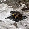 Havaların ısınmasına bağlı karların erimeye başladığı bölgede 4 araçtan ikisi orta çıktı.