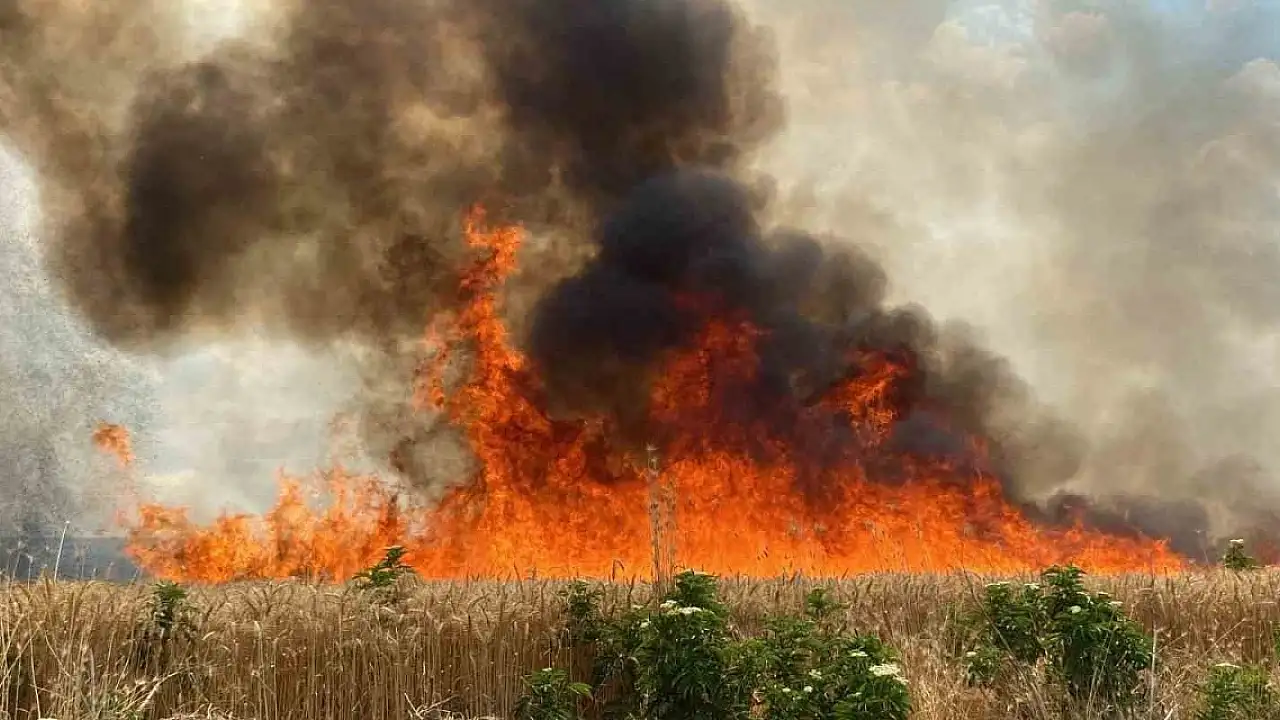 47 dönüm buğday tarlası 10 dakikada kül oldu