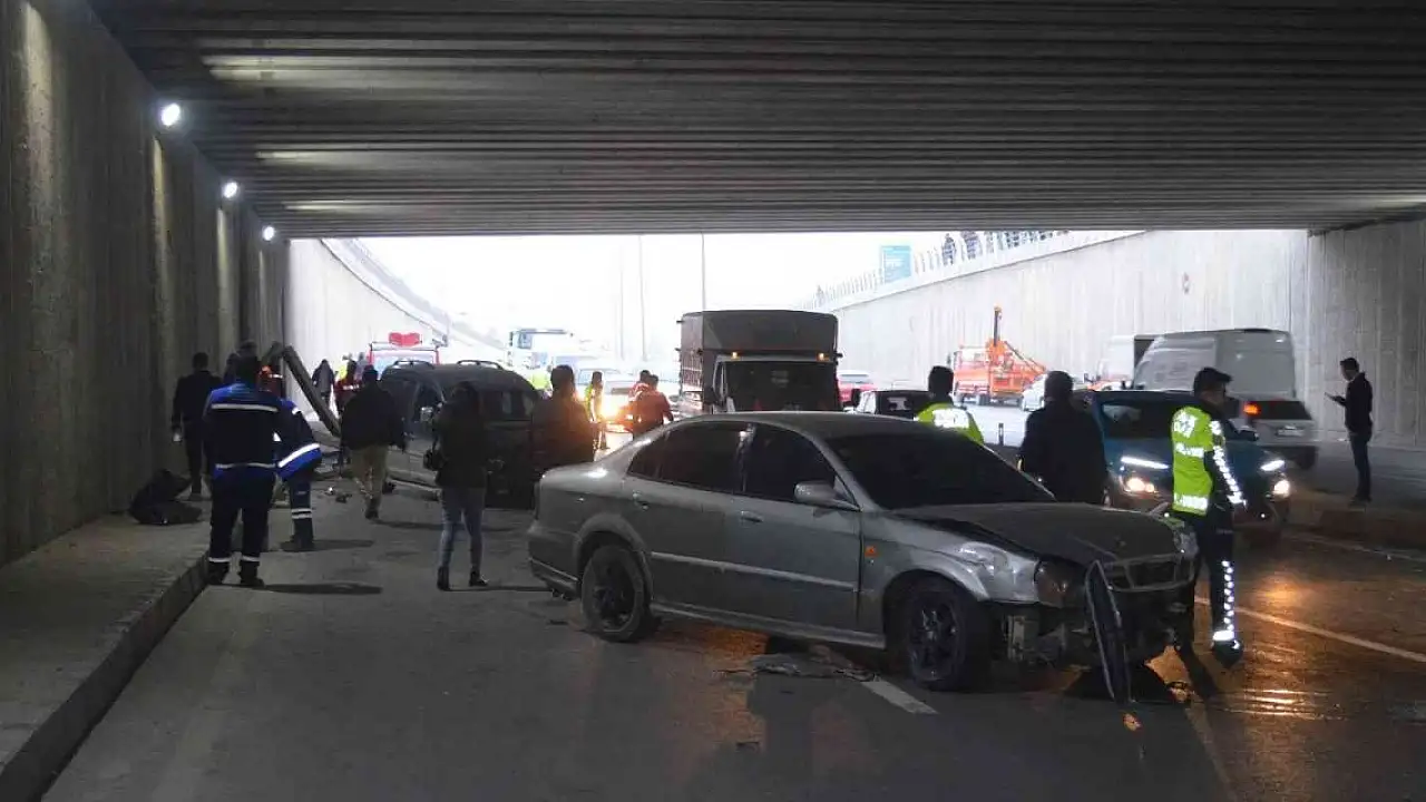 5 araçlı trafik kazasında tünelin beton blokları devrildi