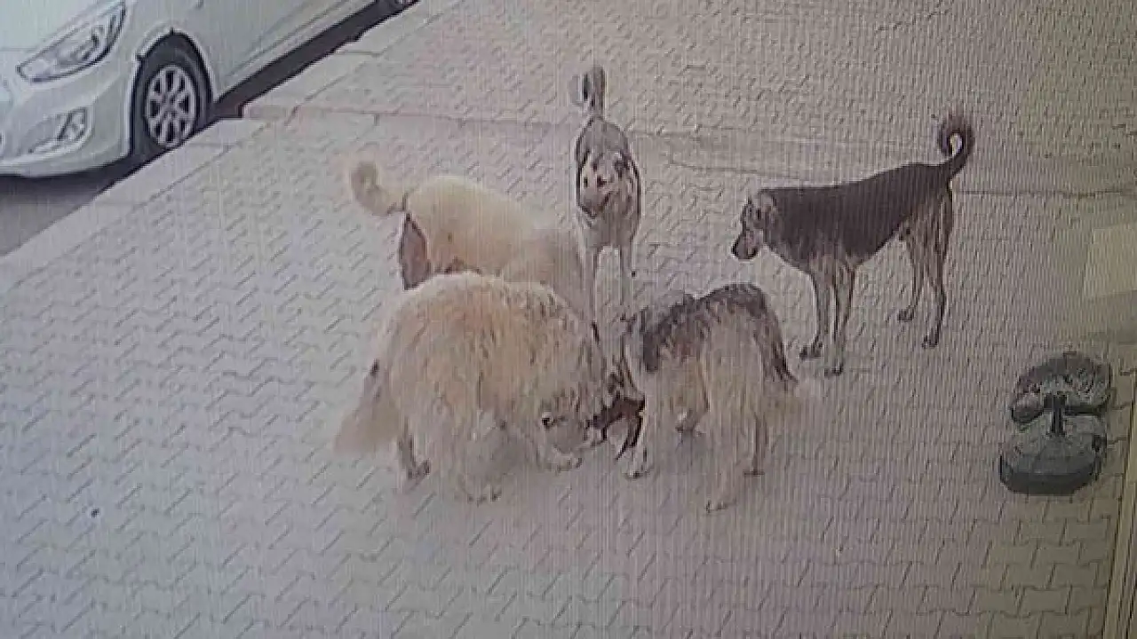 Van'ın İpekyolu ilçesinde başıboş 5 köpeğin kediyi parçalayarak öldürdüğü görüntüler dehşete düşürdü.