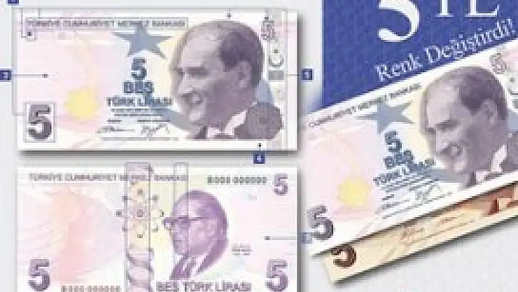 Duyuruya göre, 5 liralık banknotun hakim rengi ''mor'' olacak.