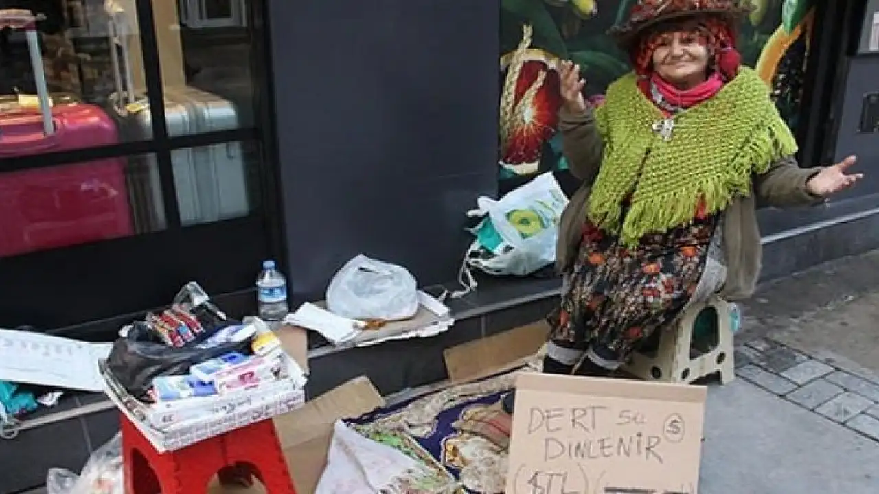 İzmir'de yaşayan 67 yaşındaki Nur Türkay, her gün Alsancak semtindeki Kıbrıs Şehitleri Caddesi'nde oturup, 5 TL'ye dert dinliyor.
