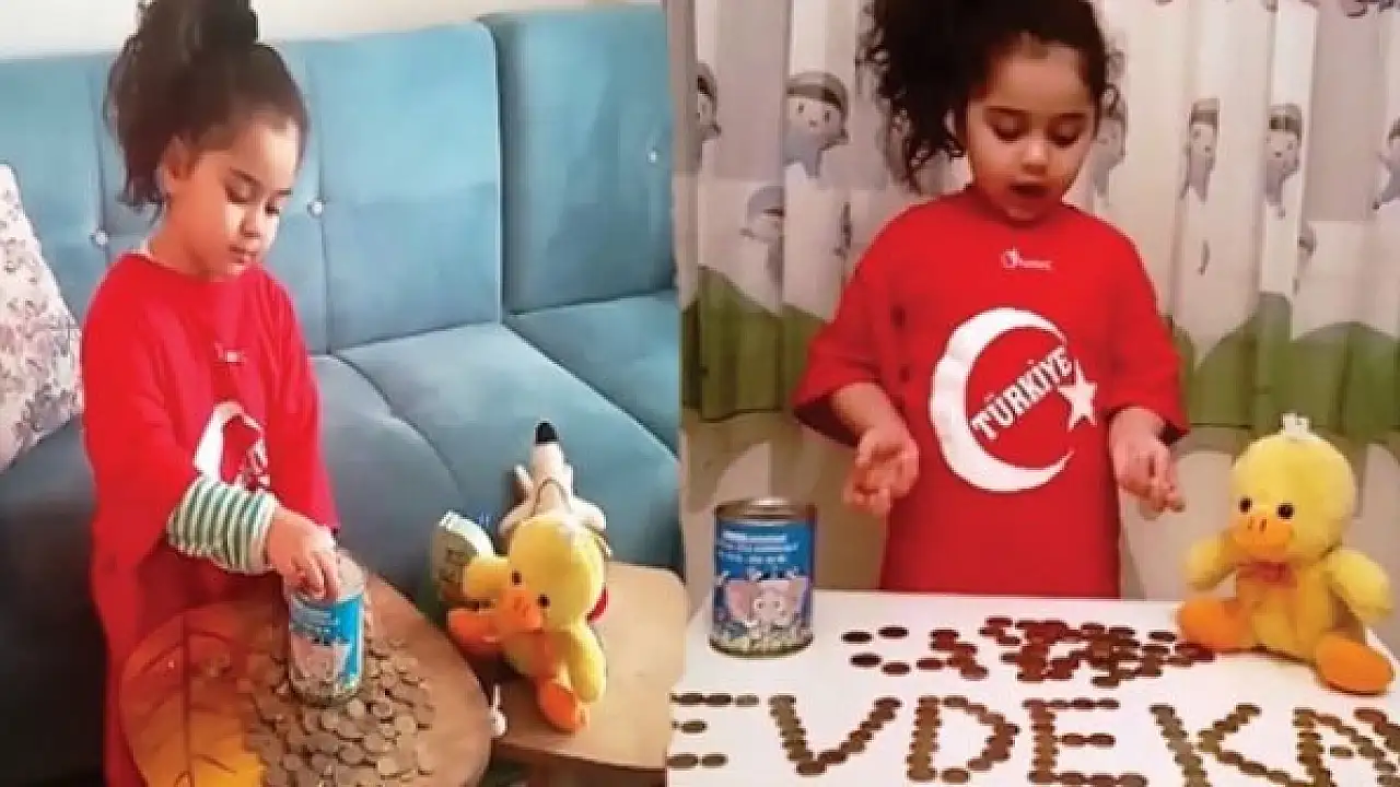Kırıkkale'de yaşayan 5 yaşındaki Asya Şimşek, 'Cumhurbaşkanım sen kampanyaya maaşını bağışladın, ben de kumbaramı bağışlıyorum' diyerek kumbarasında biriktirdiği 52 lirayı Milli Dayanışma Kampanyası'na bağışladı.