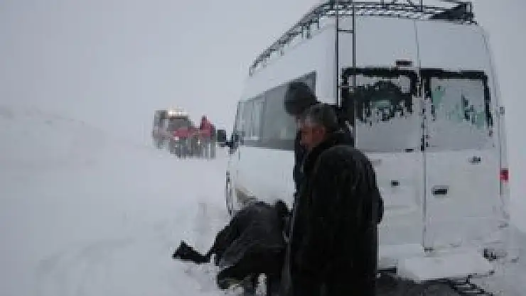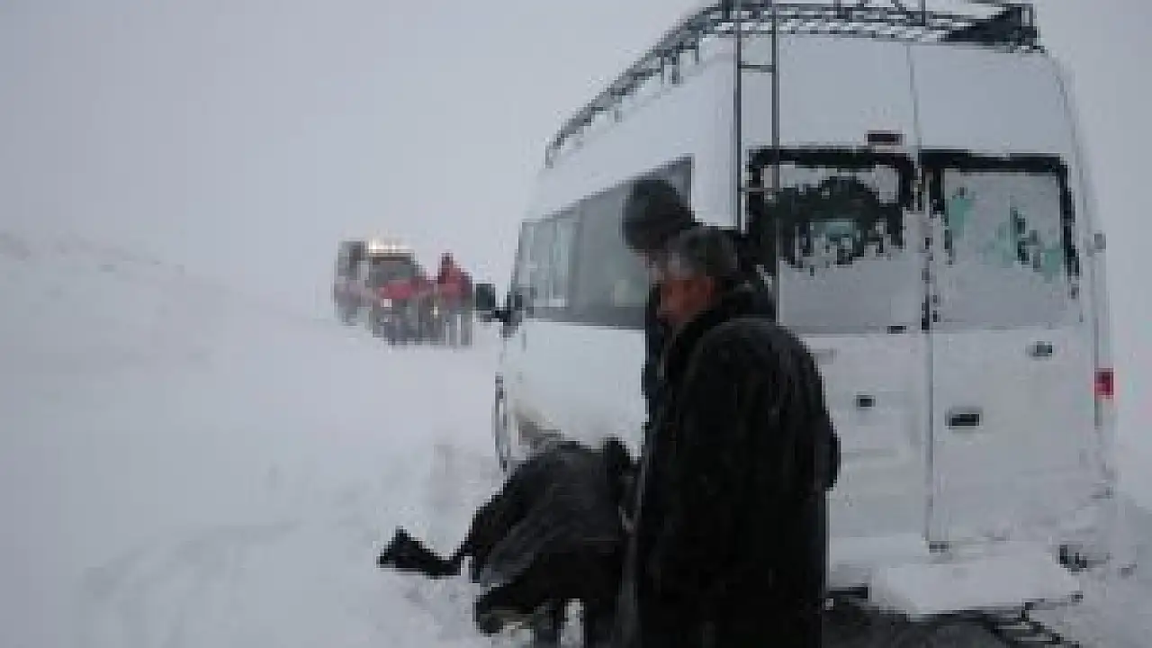 Taziye için gittikleri Ortanca köyünden kent merkezine hareket eden 20 araçlık konvoy, yoğun kar yağışı ve tipi nedeniyle yolda mahsur kaldı.