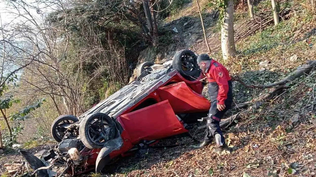 İddiaya göre Özkan B.(25)'nin kullandığı otomobil kontrolden çıkarak 50 metreden ormanlık alana uçtu. Kazada Özkan B. ve yanında bulunan Emrecan S.(26) yaralandı.