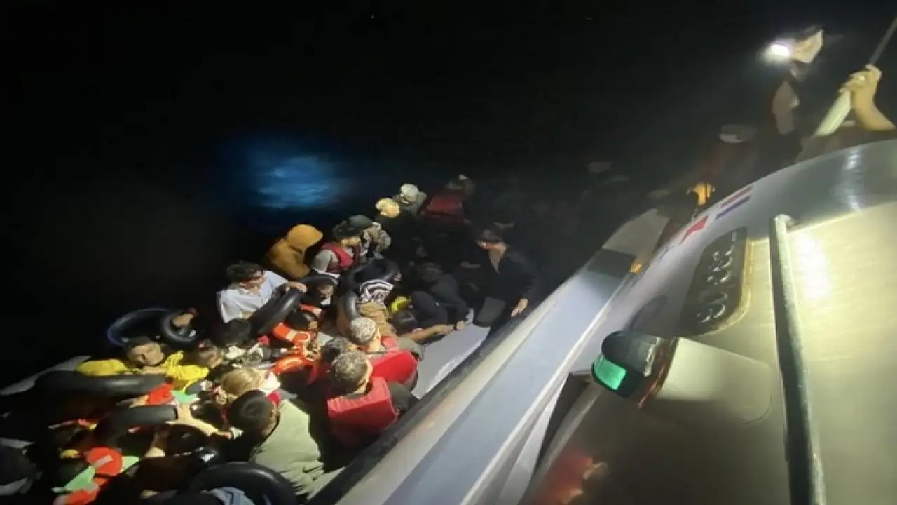 Çanakkale'nin Ezine ilçesi açıklarında hareket halindeki durdurulan lastik bot içinde 56 kaçak göçmen Sahil Güvenlik ekiplerince yakalandı.