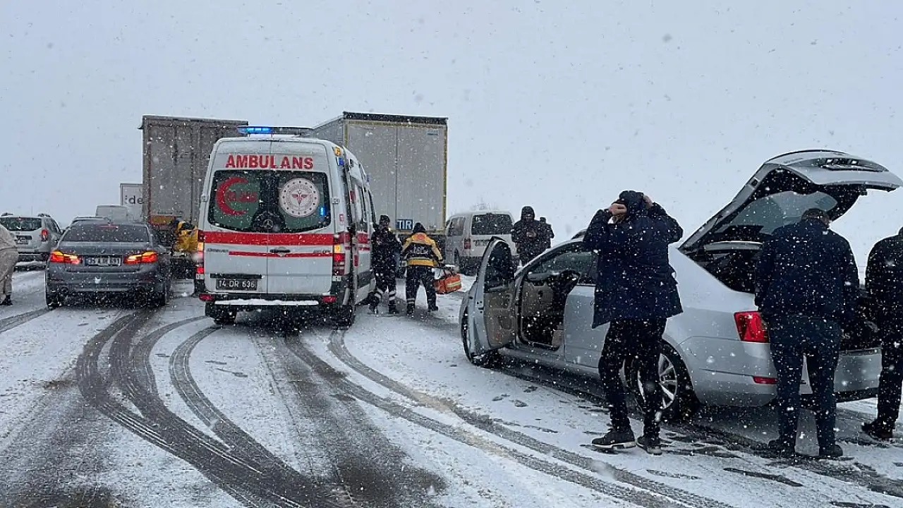 BOLU'da, TEM yolunda kar nedeniyle kayganlaşan yolda 58 aracın karıştığı zincirleme kazada 2'si ağır 10 kişi yaralandı.