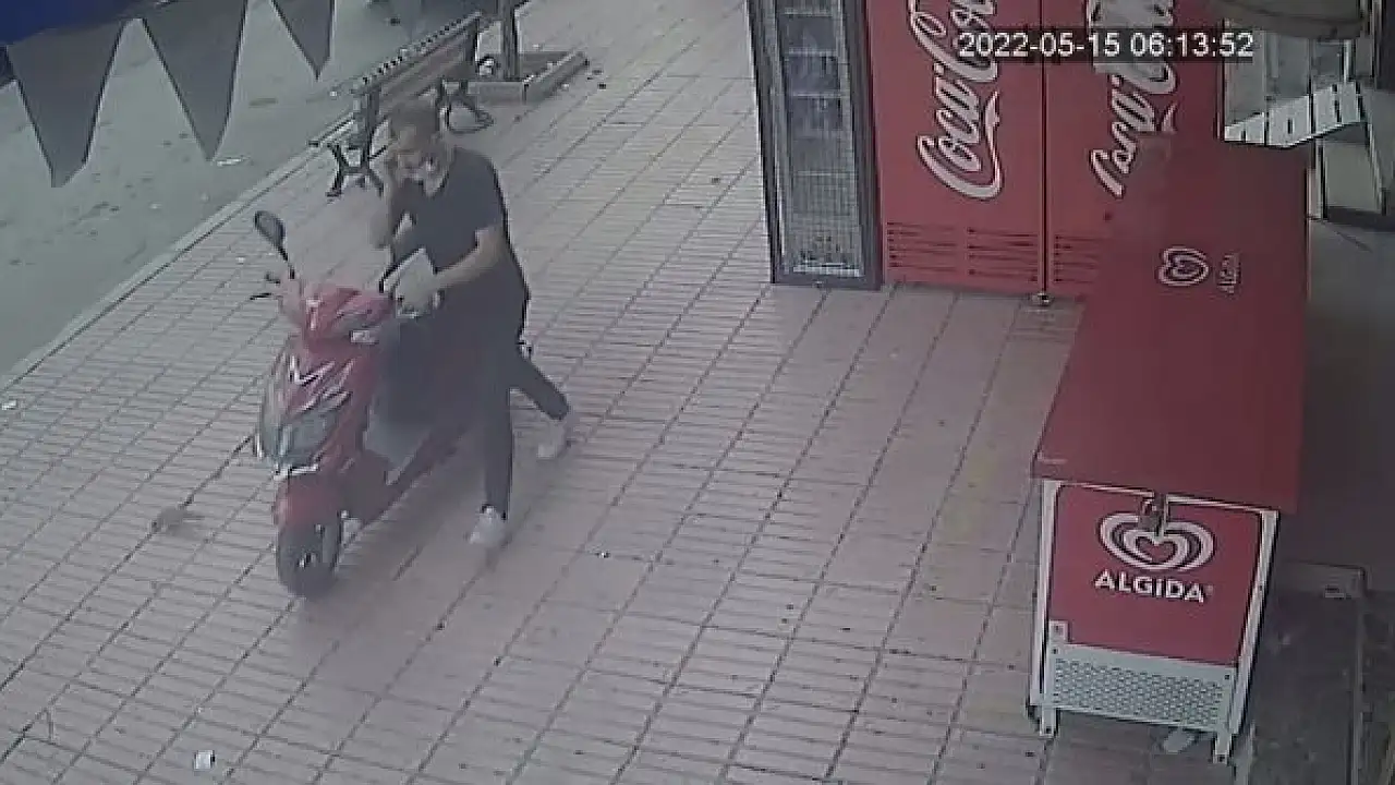 Mustafa G.'nin hırsızlık için geldiği mahallelerde önce keşif yapması, ardından da çalmak istediği elektrikli bisikletin direksiyon kilidini kırdığı anlar güvenlik kameralarına yansıdı.