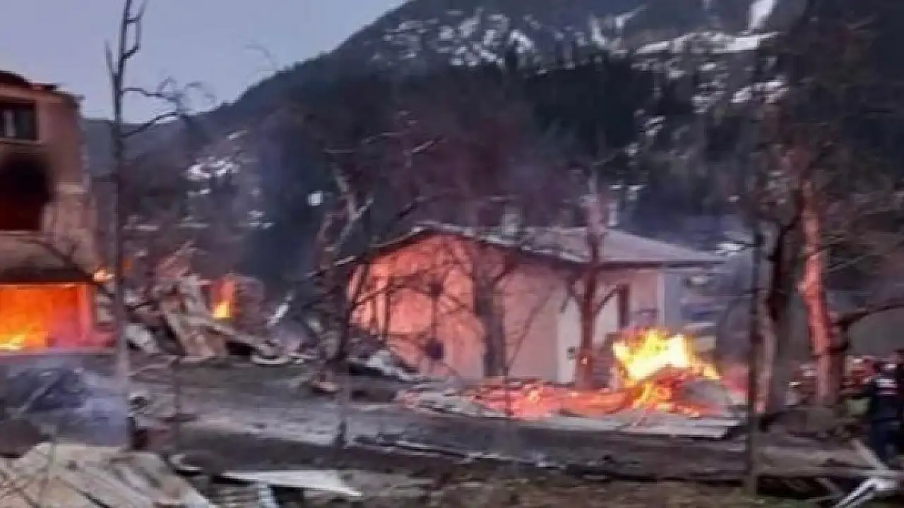 ARTVİN'in Şavşat ilçesinde, 6 ev ile 3 samanlığın hasar gördüğü yangında 1 kişi hayatını kaybetti, kayıp 1 kişi de aranıyor.