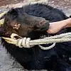 Samsun'da uçurumdan yuvarlanıp 6 gündür mahsur kalan keçi, halat yardımıyla 4 saat süren çalışma sonucu kurtarıldı.