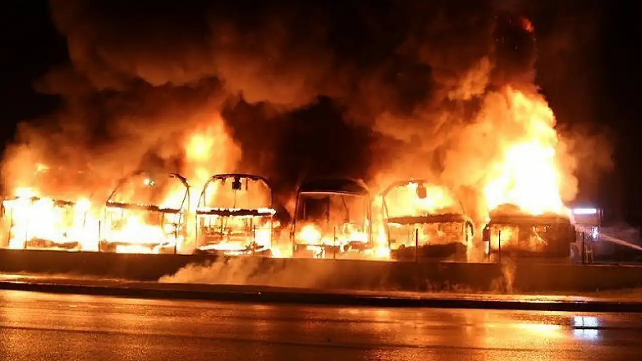 Otoparktaki 6 yolcu otobüsünün kullanılamaz hale gelmesine ve bir otobüste hasara neden olan yangının çıkış nedeni araştırılıyor.