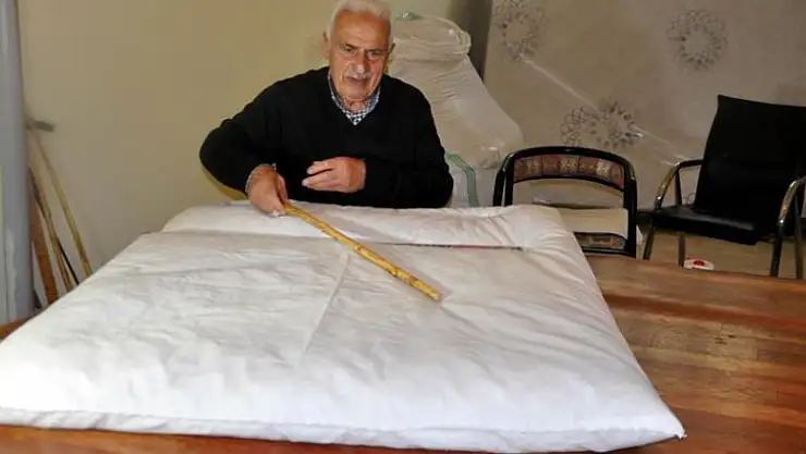 Yaklaşık 60 yıl önce Muş'a yerleştikten sonra yorgancı dükkanı açtığını ve oğlu Nazım ile çalıştığını ifade eden Bayram, iğnesini elinden hiç düşürmediğini söyledi.