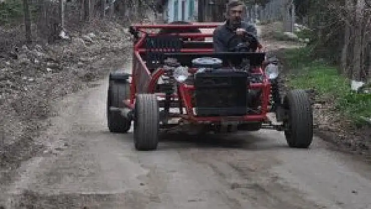 Aracın yapımında çalışan Sebahattin Arslan’ın oğlu Samet Arslan ise “Babam boş zamanlarını değerlendirmek için bir uğraş arıyordu. İnternette gezerken bir araba gördü. Bir süre nasıl yaparız, acaba olur mu diye, becerebilir miyiz, sistemini oturtabilir miyiz diye düşündük. Sonra yaparız, başlayalım dedik. İnternette resimlere, videolara baktık. Nasıl yapıldığını öğrendik. Arabanın ilk önce önünden başladık. Şaselerini oluşturduk. Elektrik aksamına sıra gelince yeğenim Atakan Arslan devreye girdi. Ondan sonra mekanik kısmında yeğenin Mustafa Arslan devreye girdi. O kaynak işiyle uğraştı. Boyasız haliyle ilk önce internete koyduk. Renk olarak hangisi olabilir diye fikir istedik. Allah razı olsun çoğu kişide yardımcı oldu. Kırmızı renkte karar kıldık. Sonrasında hiç çalıştırmadan komple söktük. Fırın boyasını attık. Elektrik aksamını tekrar gözden geçirdik. Boyadan çıkarıp, tekrar topladık. Bu sefer test sürüşüne çıkalım dedik. Hiçbir sıkıntı yaşamadan çalıştı. Sonrasında eksiklerini tespit ettik. Bir daha gözden geçirdik ve şuanda yollardayız. Hurdaya ayrılan bir otomobilden bunu yaptık. Bu aracı yapmak için 3 ay tasarımı sürdü. Yapımı ise 1-1,5 ay sürdü” dedi.