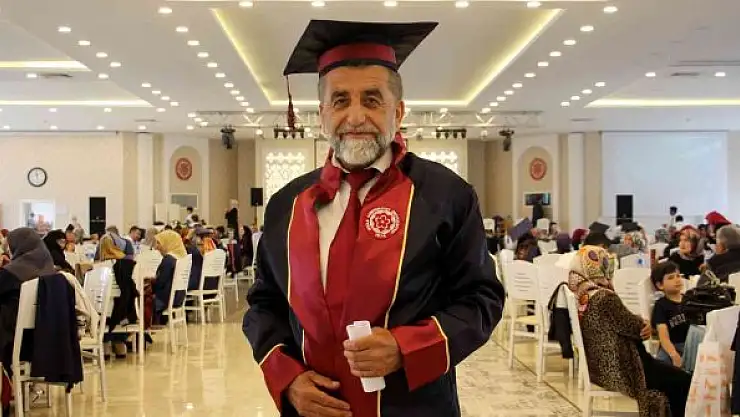 Sivas Cumhuriyet Üniversitesi İlahiyat Lisans Tamamlama programında öğrenim gören 62 yaşındaki Adnan Coşkun, torunları yaşındaki öğrencilerle birlikte mezuniyet sevinci yaşadı.