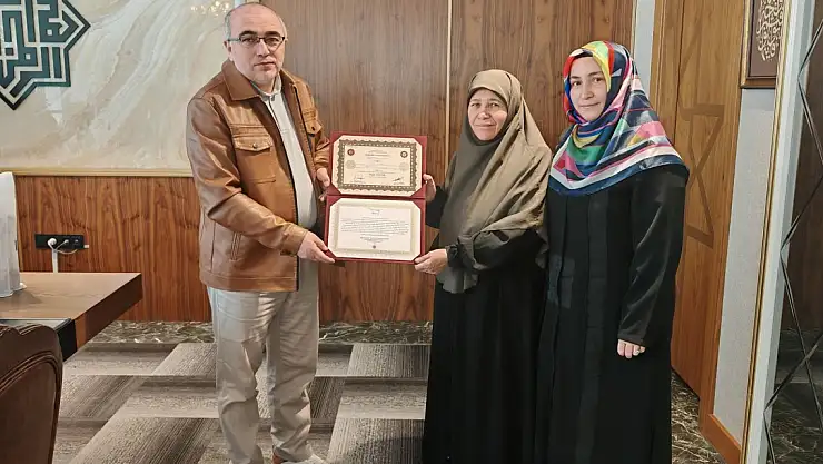 Selçuklu Merkez Kız Kur'an Kursu'nda hafızlık eğitimi gören 14 hanımefendiden biri, 63 yaşında hafızlık eğitimini tamamlayarak büyük bir başarıya imza attı.