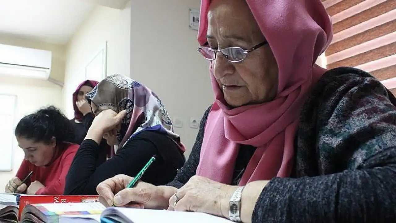Dünyaya geldiği Diyarbakır'da "kız çocukları okutulmaz" zihniyetiyle okula gönderilmeyen Kadriye Pişkin, Yalova'daki Halk Eğitim Merkezi ve Kent Konseyi tarafından yetişkinlere yönelik açılan kursta 65 yaşında okuma yazma öğrenmenin mutluluğunu yaşıyor.
