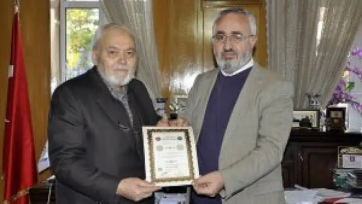 Akpınar, göstermiş olduğu başarıdan dolayı Öztürk'ü tebrik ederken, kendi kaleminden yazdığı "Kur'an'la Yaşama" isimli kitap setinden de Öztürk'e hediye etti.
