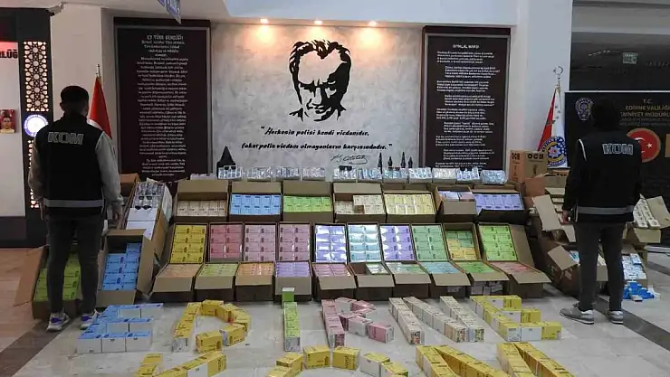 Edirne İl Emniyet Müdürlüğü Kaçakçılık ve Organize Suçlarla Mücadele Şubesi (KOM) ekiplerince yapılan çalışma sonucu çok sayıda gümrük kaçağı ürünün yurda giriş engellendi. Edirne'de Kapıkule Sınır Kapısı'ndan giriş yapan ve sürücülüğünü M.Y. isimli şahsın yaptığı 42 AON 856 plakalı tır polis ekiplerinde otoyol gişelerinde durduruldu. Tırın çekici ve bu çekiciye bağlı dorsesinde arama yapıldı. M.Y'nin kullandığı 42 AON 856 plakalı tır ve tıra bağlı 42 AHT 821 plakalı dorsede yapılan aramada gümrük kaçağı 1 milyon 440 bin sigara sarma kağıdı, 1 milyon 512 bin sigara filtresi, 13 bin 400 elektronik sigara, bin 100 markasız gözlük ve 390 hormon ilacı ele geçirildi.