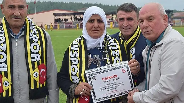 Bilecik 2. Amatör Lig'de mücadele eden Bozüyük İçköy Spor'un maçlarını kaçırmayan 70 yaşındaki Hanım Ölçer, madalya ile ödüllendirildi.