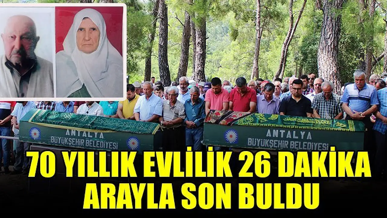 Antalya'da 92 yaşındaki Abdurrahman-Raziye Yılmaz çifti 26 dakika arayla hayatlarını kaybetti. 70 yıllık evliliklerinde 11 çocuk, 30 torun sahibi olan çiftin yaşarken, 'İnşallah bu dünyadan aynı gün gideriz' dilekleri gerçek oldu.